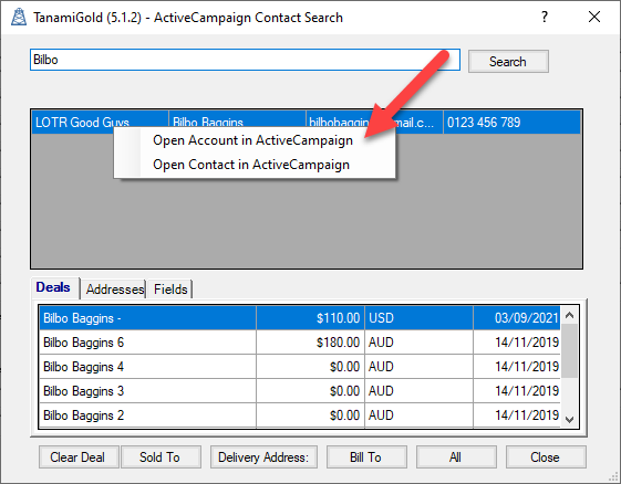 The ActiveCampaign Ids for the contact and company/account are shown below the address details. This is how you know the contact is linked to ActiveCampaign, rather than being manually typed in.