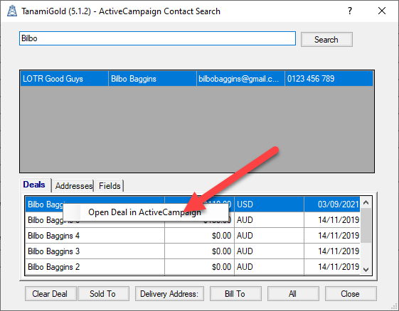 You can open the deal in ActiveCampaign with a right click on the deal.