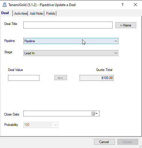 When you save your document in QuoteWerks, if it's linked to a Pipedrive contact, it will show the following screen if it's linked to a deal, unless you have limited this via the document status in the user settings.
